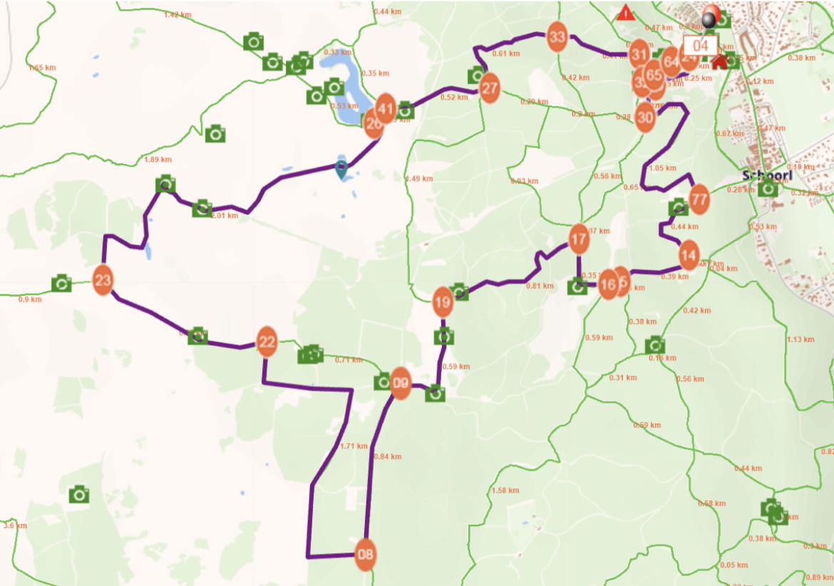 Bovenaan de trappen bij knooppunt 32 is de eerste vraag. Als je hier bent aangekomen kun je de vraag beantwoorden.